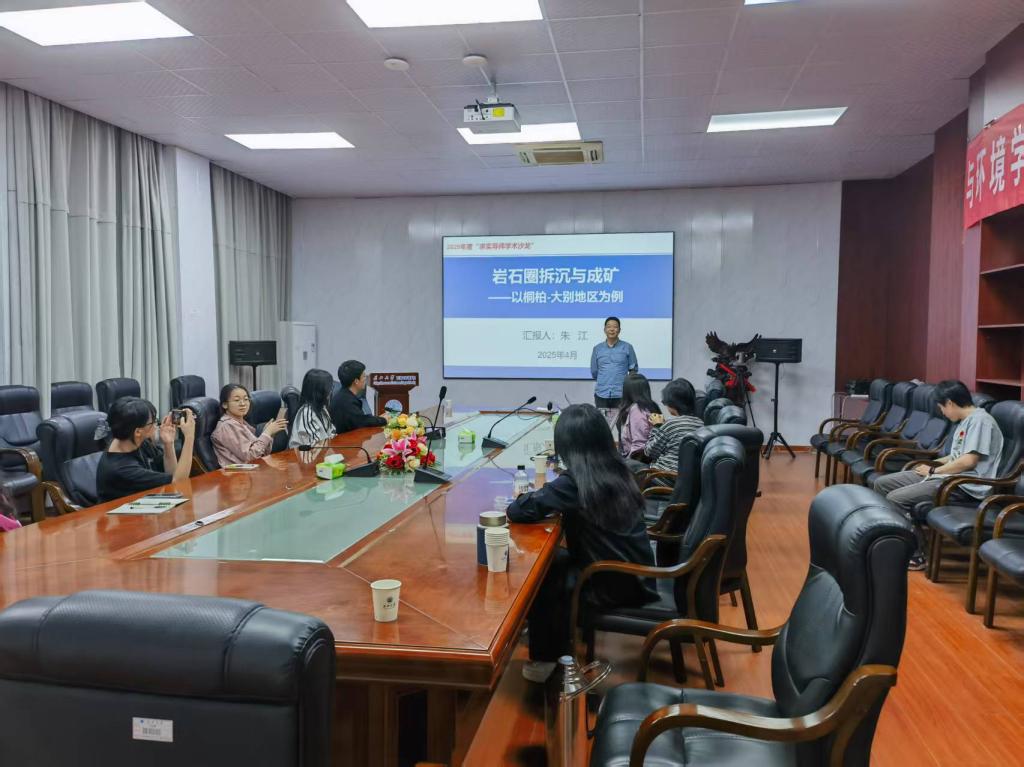 (通讯员 周繁艳)2025年4月9日19:30,sunbet“求实导师学术沙龙”系列讲座在石油科技大楼D101会议室如期开展。本次讲座由吴越教授、段登飞副教授、朱江副教授三位优秀教师担任主讲人,相关固体矿床领域研究团队成员及多位在校硕士研究生参与了此次学术交流会。