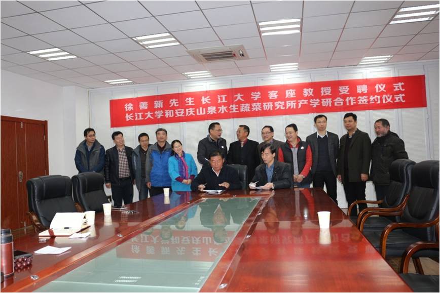 (通讯员 莫晓靥)11月09日上午,安徽安庆市山泉水生蔬菜研究所所长、作家徐善新先生受聘公司客座教授暨安庆山泉水生蔬菜研究所产学研合作签约仪式在石油科技大楼A305举行。