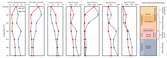 图2 青山口组页岩AHP和HP热模拟实验过程中的孔隙结构演化(抽提后)