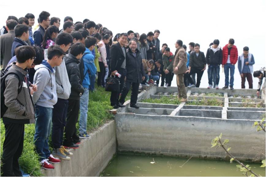 接着,梁智博老师分别从清江水生态体系修复的构思、背景、历程三个方面开始了讲座,提出了具有造血功能的生态治理模式。这种模式通过巧妙的生态设计,能够达到科学的协同共生,实现资源的合理化利用。其次,对于当遇到水体富营养化这类棘手的问题应如何解决以及如何将这些营养物质转换为资源再利用等问题,梁智博老师也进行了详细的解析。台下不时响起热烈的掌声。在梁智博老师回答了同学们提出的问题后,为了让同学们能够更加直观地了解相关知识,做到理论与实践并存,老师带领着同学们参观了公司的教学与科研基地进行参观。