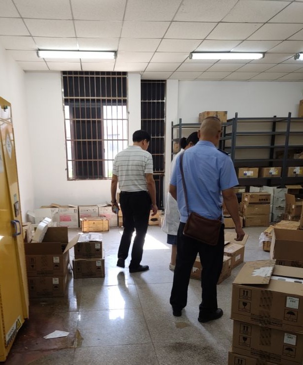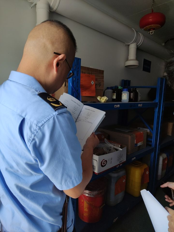 9月26日上午,蔡甸区环保部门检查工作组莅临公司开展实验室危险化学品安全检查工作。武汉校区安全与后勤保障处处长邓平,sunbet公司实验室相关人员参加检查活动。检查查看了危化品存储间、废物处置间。