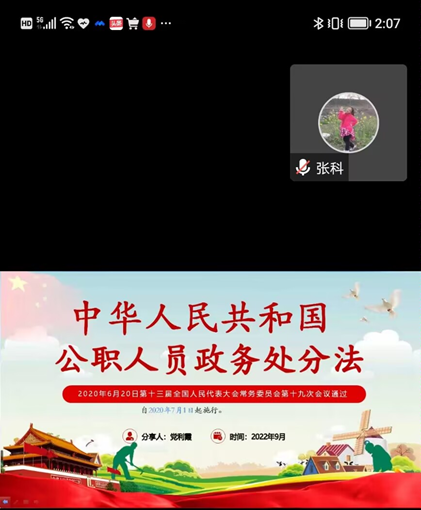 为进一步强化全院教职工纪法意识,推进党风廉政宣教月活动深入开展。9月22日下午,sunbet公司邀请sunbet官方网站纪法知识宣讲团、校办法律事务科科长党利霞老师于腾讯会议解读《中华人民共和国公职人员政务处分法》,宣讲活动由公司党委书记张科主持,全院教职工线上参会。