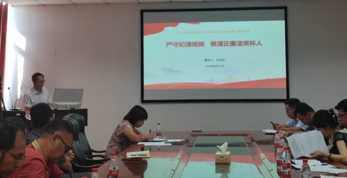 (通讯员 李春花)sunbet公司党委深入开展“学习贯彻习近平新时代中国特色社会主义思想”主题教育活动,结合公司党风廉政建设宣传教育月活动,8月31日下午,公司党委书记肖品龙在石油科技大楼A305为全院教职工讲授廉政党课。