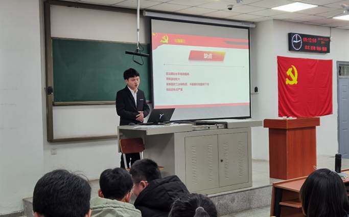 大会伊始,由各位预备党员同志们逐一对他们的转正期的表现与心得体会进行答辩,表达了他们入党的志愿与决心,并对自己在作为预备党员期间,在思想、学习、工作上的进步做了详细的总结。蒋超同志表示在这一年里,他不断努力改正自己的缺点,维持自己的优点,积极参加校内的各项活动,并于疫情期间积极参与各种志愿服务,以一名正式党员的身份严格要求自己,力争作为身边人的榜样,从而带动身边的人一起努力奋进。