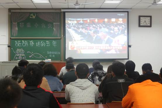 同学们认真观看习近平主席十九大讲话视频,学习十九大精神。视频中,习近平主席对中国这几年的进步、存在的不足以及后续发展的基本策略和指导方针等方面进行了全面地分析。“中国在这五年间,各方面都在飞速进步,但在经济水平、贫富差距以及社会文明素养等方面还存在问题和不足,”习近平主席在讲话中明确指出,“现在这个时代,是一个承前启后的时代,是为人类作出更大贡献的时代,我们一定不能懈怠。”