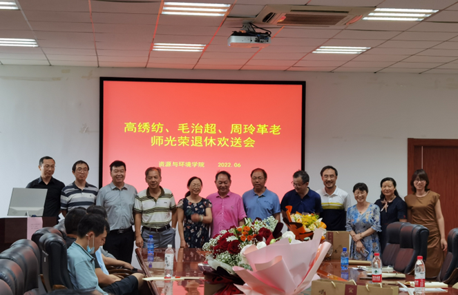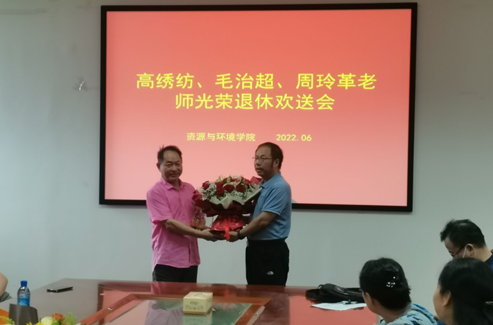 紧接着,sunbet经理文志刚教授分别向高绣纺、毛志超和周玲革老师献花并颁发退休纪念品,教职工合影留念。