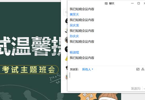 此外,各班班长在班会中强调了“考试帮帮群”的问题。因临近期末考试,不少同学还会抱着侥幸的心理进一些“帮帮群”,班长强调假如有同学不小心进入了这样的群应及时退出,如果抓到有人在这类群中不管有没有作弊都会被认为犯罪同伙,会受到一定的处分,同学们听后受益匪浅。为了更好的督促同学们形成良好考风,sunbet公司还将期末考试时间及纪律要求通过家长群传达到每位家长,通过家长和公司共同努力教导同学诚信应考。