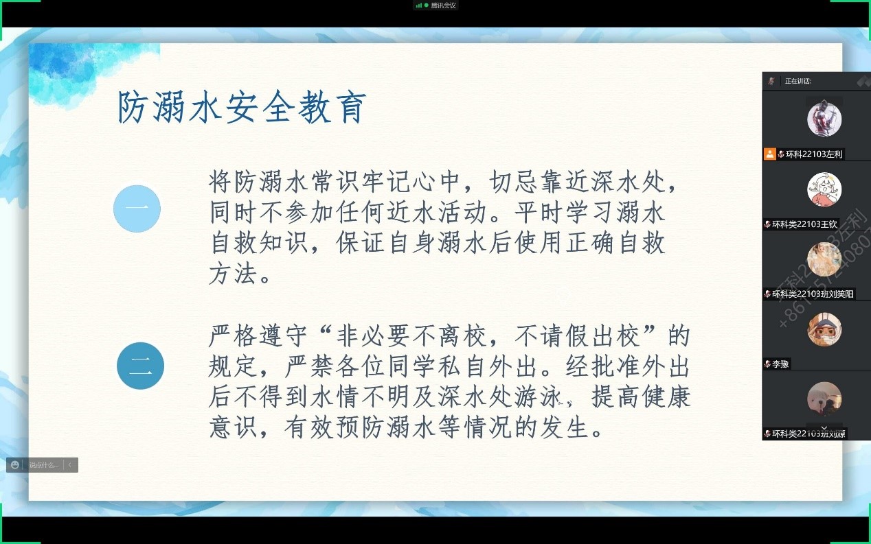 (通讯员 左利 图/文)暑假来临,为提高同学的防溺水安全意识以及疫情防控意识,保障同学们假期安全,认真贯彻落实公司安全教育,sunbet组织全院各班安全委员在自己班级内召开以“防溺水安全知识教育、疫情防控安全教育”为主题的安全班会。