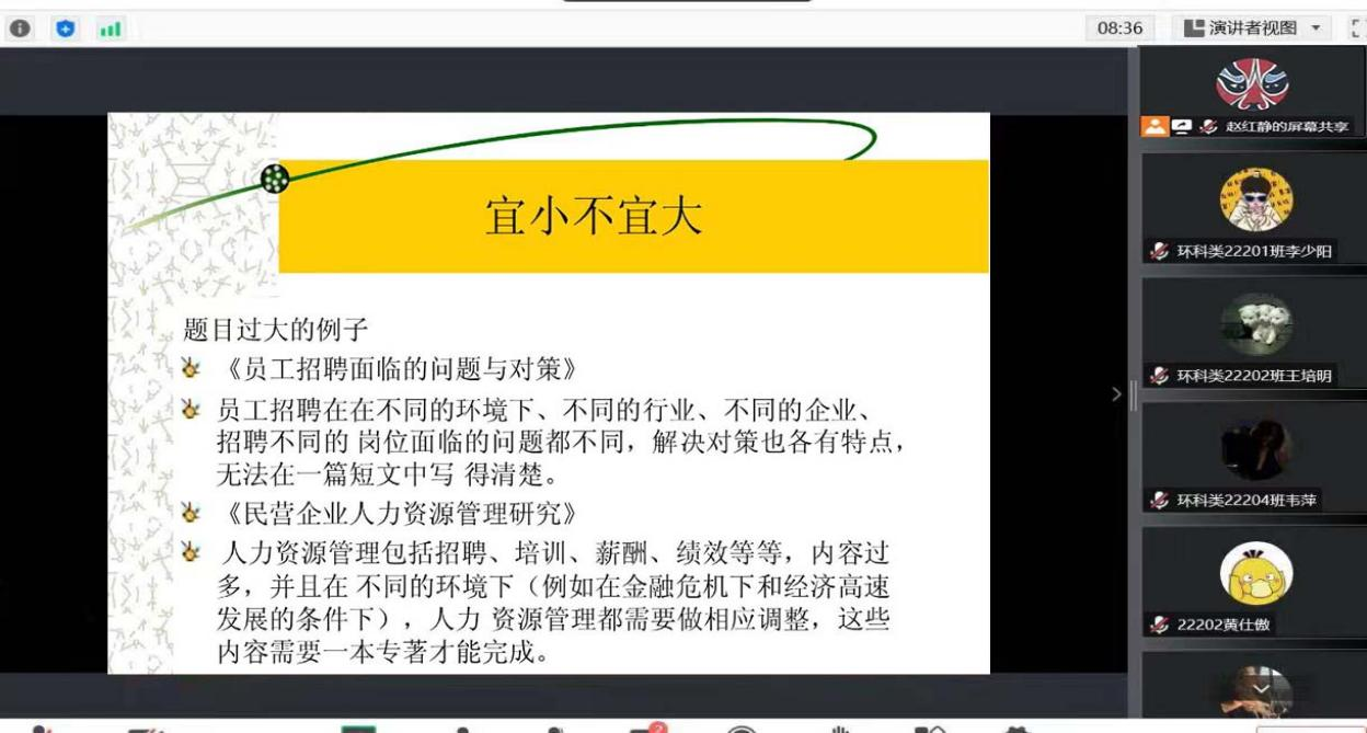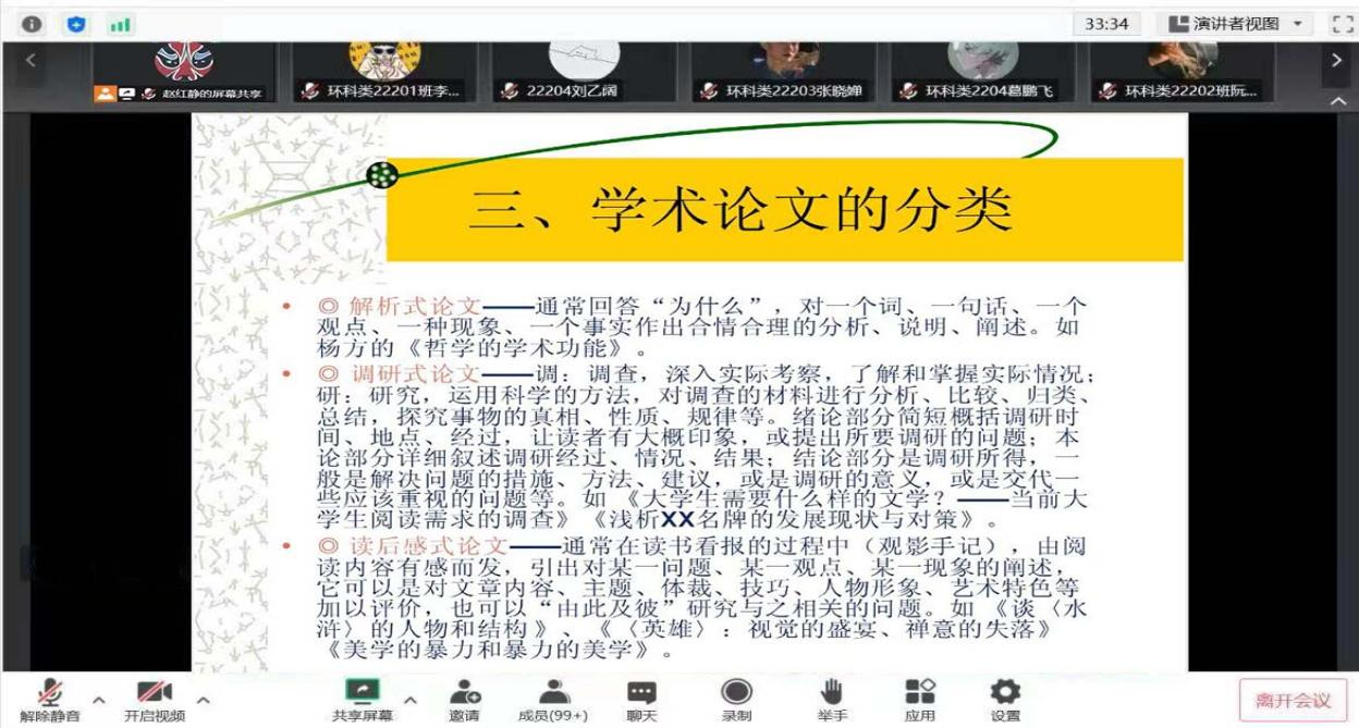 专业论文的标准撰写是每位长大学子都要牢牢掌握的基本功,将理论与实践相结合,培养高素质专业人才是公司教育培养的重要目标。赵红静老师多次强调一篇优秀的论文分为基本知识、基本环节、写作技巧与经验三部分,并且说明论文写作是一个增长知识,交流信息的过程。接着,赵红静老师向大家展示了几篇优秀论文的思路和写作架构,给予大家一些启发与思考。