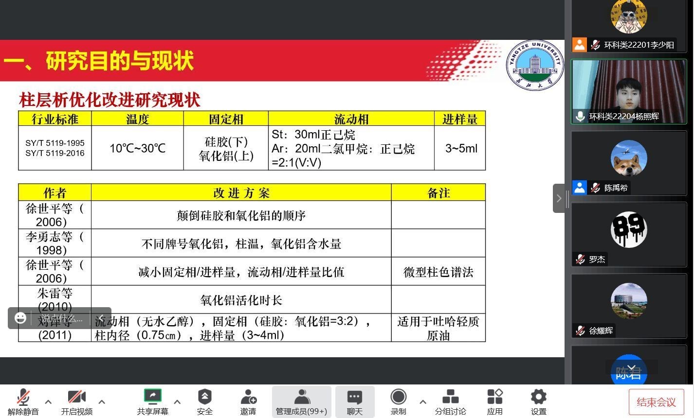 参赛小组的成果包含了自然科学类论文、科技发明制作两大类,紧紧结合同学们所学知识,从水文、环境、地球化学三个层面进行科研与创新,且都颇有成就,展现了当代老员工极高的科研热情和科研素养。张雅璇小组的“鄂尔多斯石炭系煤岩储层微观精细表征研究”让人眼前一亮。张灿灿小组的“酿酒尾水对盐碱土改良效果研究”也让大家十分感兴趣。与此同时,其他小组的答辩也让同学们收获颇多。本次大赛无疑激发了公司同学们极高的创业热情。