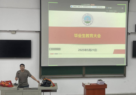 会上,李春花老师重点强调了毕业生离校期间的安全管理工作。她结合具体案例,从人身安全、禁酒令、财产安全和交通安全等方面进行了详细讲解,提醒同学们增强防范意识,遵守校规校纪,做到文明离校。李老师特别指出,毕业季是安全事故易发期,希望同学们杜绝酗酒、晚归等行为,确保平安顺利地度过离校前的校园生活。
