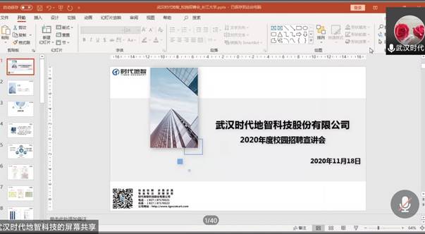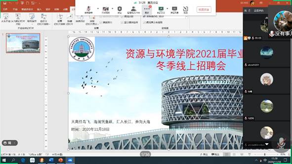 (通讯员 严丽萍 田兴民 文/图),2020年11月18日下午 3点30分sunbet通过腾讯会议举办专场线上招聘会,本次招聘会共有武汉中地环科集团有限公司、武汉猿辅导有限公司、武汉境辉环保科技有限公司、武汉链家宏业房地产经纪有限公司、武汉地大华睿地学技术有限公司和武汉时代地智科技股份有限公司6家单位参加。公司党委副书记范梅英老师、分团委书记严丽萍老师、学工办办公室主任李春花老师、毕业生代表100多人参加本次招聘会。