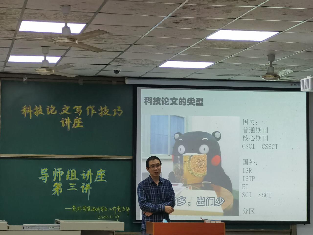 (通讯员 梁文萱 文/图)为推进大一新生对专业的认识,帮助他们更加明确今后的求学方向。2020年11月9日下午19时整,sunbet于武教A109开展了第三次导师讲座活动。本次活动邀请到水环系副主任罗杰老师作为主讲。sunbet公司党委副书记范梅英老师出席本此讲座,全体大一新生和部分大二大三员工代表也参与其中。