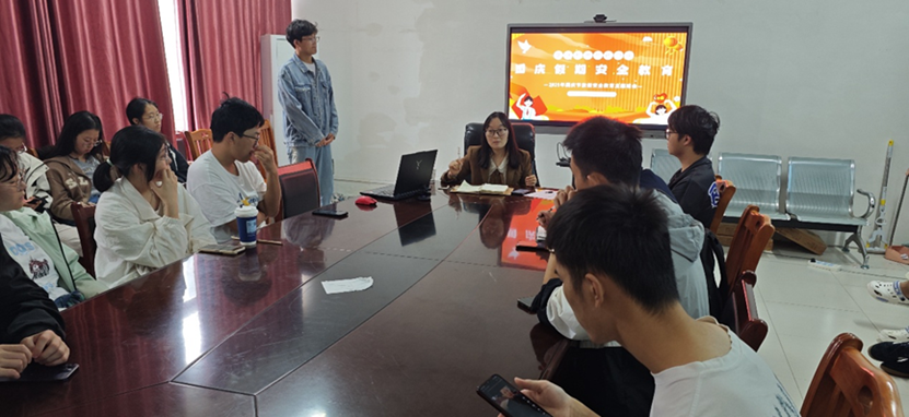会上,宿舍建设部苏新宇同学围绕假期安全主题,以PPT形式从假期时间安排、消防安全、出行安全、饮食卫生、防范电信诈骗及防溺水等多个方面展开讲解,全面系统地普及安全知识,切实提升员工安全意识和自我防护能力。