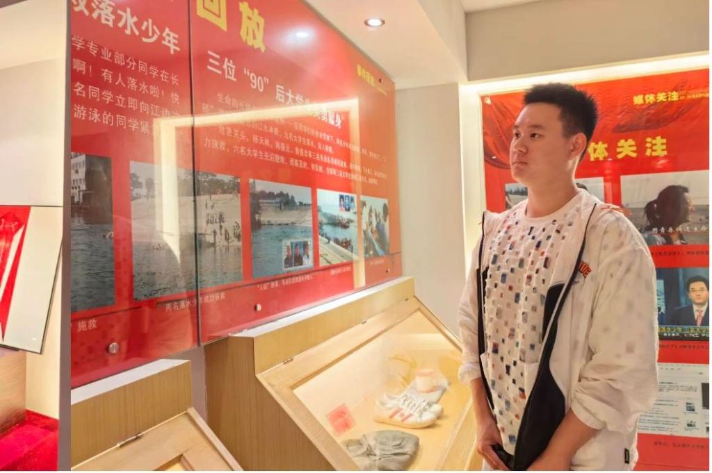 伴随着讲解员的脚步,同学们来到了二楼的精神传承博物馆。在此,讲解员不仅讲述了英雄学子们英勇无畏、舍己为人的感人事迹,还特别强调了水域安全的重要性,呼吁员工们珍惜生命,切勿冒险进入未知水域。员工们的内心深受触动,纷纷表态将铭记英雄事迹,传承“人链精神”中的无私与勇敢。