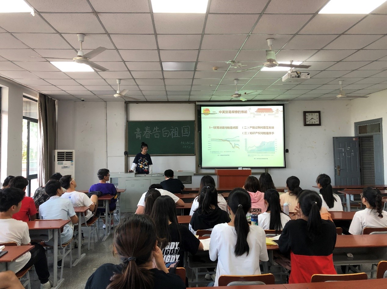 青春告白祖国主题班会由团支书以短视频的方式带大家学习《中美贸易摩擦的缘起、影响和未来走向》、《关于当前香港局势,这三点意见都说清楚了》、《不忘初心 牢记使命 扎实推进双一流建设——董事长冯征在2019年暑期工作研讨会上的讲话》。让同学们认识到立足自身与建设祖国的有着密不可分的联系,作为老员工应从基层做起,认真负责,吃苦耐劳,敢于挑战自我,提高自身素质,增长建国之才。爱国就是要以报国之志聚精会神搞学习,一心一意谋发展。在祖国的七十岁华诞到来之际,以更为饱满的精神和更加专业的素养去迎接伟大祖国未来的复兴。