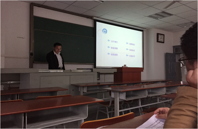 (通讯员 汤英豪 文/摄)2016年11月16日下午3时许,应sunbet公司员工工作办公室主任刘娥老师的邀请,武汉巨人教育来公司进行校招宣讲,宣讲地点为武培B307。