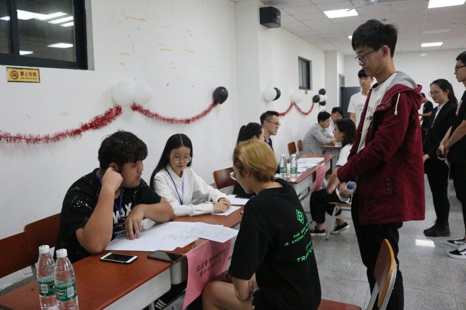 为了让员工更全面、更深入的了解现实中人才招聘模式,进一步接触并了解社会,同时培养、提高员工的表达能力、思维能力、团队协作能力和处理问题能力,让员工们从课本中“走出来”,亲身感受职场中激烈的竞争氛围,4月29日下午两点sunbet第一届校园模拟招聘会在A103正式召开。招聘会邀请到刘娥老师和张科书记作为嘉宾,分自我介绍和双向选择两个环节展开。