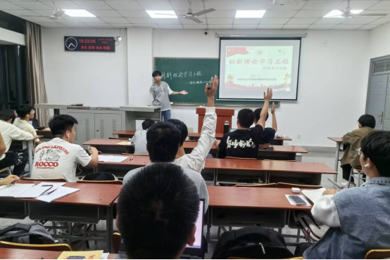 在为期半个月的学习周期内,学习小组首先进行了讨论确定此次创新理论学习的总体内容及流程,列出学习大纲,确定各班级、各支部的学习方式。例如23级员工利用晚自习的时间由班长对创新理论内容进行讲解,并在班中进行互动交流;各团支部利用在开展团会的同时,对创新理论学习内容再次进行强调;在本科生党支部十一月的主题党日活动中,学习小组也利用了这个平台进行了宣传,并呼吁党员起到先锋模范作用,带头进行学习。