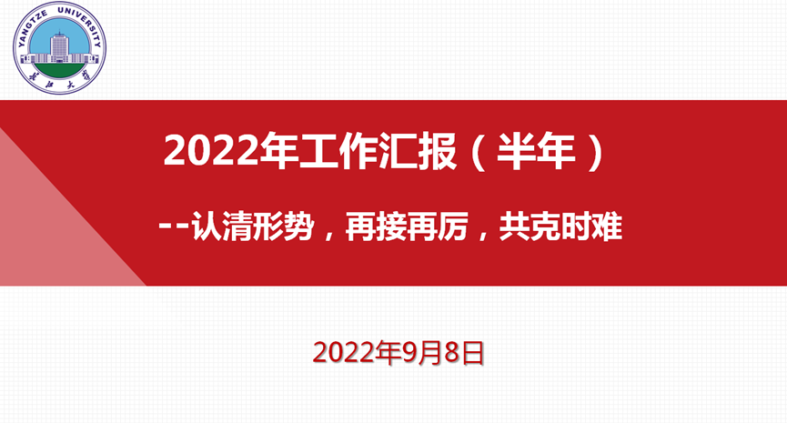 硕果累累,未来可期。梦想新年开门红,“水文水资源工程”获批国家一流本科专业;课程建设上台阶,“资源与环境概论”获推荐湖北省一流本科课程;实验室改革传喜讯,“油气地球化学与环境湖北省重点实验室”获批建设;科学研究出硕果,公司国家自然基金获批8项,位居全校榜首;员工工作精益求精,四级通过率再提升,稳居全校前列;教授团队建设成果、教师个人荣誉、科技成果产出百花齐放。会议第二议程,公司经理文志刚作题为“2022年工作汇报(半年)—认清形势,再接再厉,共克时艰”的工作报告。