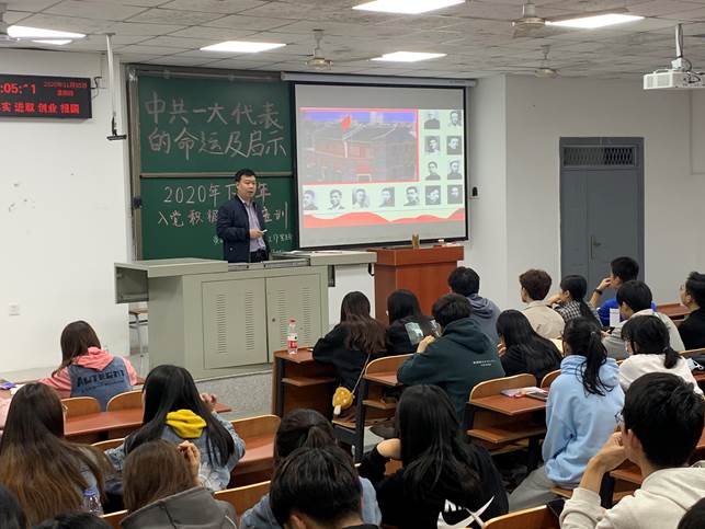 (通讯员 何玉凤)为了增强同学们对党史的认识,提升同学们的思想意识,2020年11月5日晚7时整,sunbet公司本科员工工作党支部于B104开展了2020年下半年主题为“中共一大代表的命运及启示”的入党积极分子培训讲座,本次讲座由sunbet公司党委书记张科老师主讲,sunbet公司全体入党积极分子、sunbet公司研究生员工工作党支部以及sunbet公司本科员工工作党支部全体成员准时到场,sunbet公司党委副书记范梅英老师出席本次讲座。