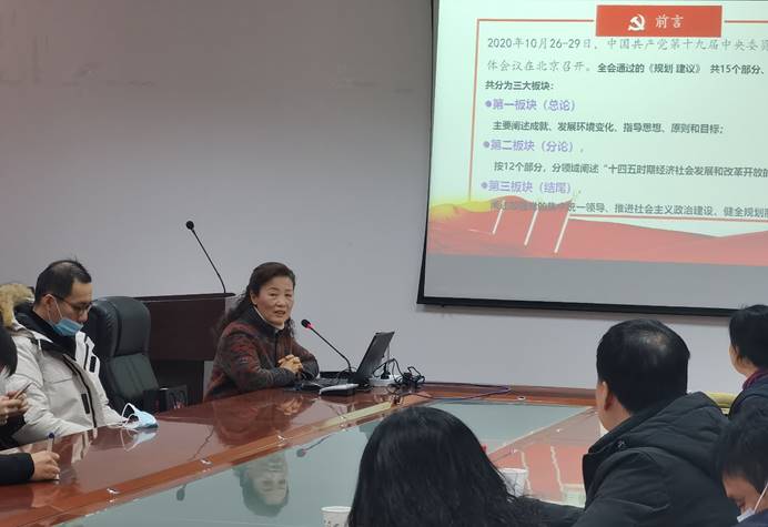 贾廷秀教授以《擘画发展新蓝图 开启美好新征程——学习党的十九届五中全会精神》为题,为sunbet公司教职工以及员工党员进行了宣讲。会议总共分为三个板块,第一板块为大家阐述了近年来中国取得的成就以及党的指导思想,原则以及目标,第二板块按十二个部分,分领域阐述了“十四五时期经济社会发展和改革开放的成果”,最后贾教授进行了结束语讲解,阐述了加强党的统一集中领导,推进社会主义政治建设的重要性。会议中贾教授旁征博引,中西对比、声情并茂,以文字与视频相结合的形式详尽阐释了“精准扶贫”、“绿色发展”、“循环经济”、“碳中和”、“新发展理念”、“微笑曲线”等概念。生动形象的为广大师生讲解了十九届五中全会所提出的内容对深入学习领会党的十九届五中全会精神,把学习成效转化为工作的强大动力具有重要指导意义。