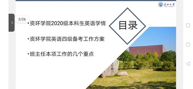 会议中,李春花老师从sunbet公司2020级本科生英语学情、sunbet公司英语四级备考工作方案、班主任本项工作的几个重点三个方面展开了动员。
