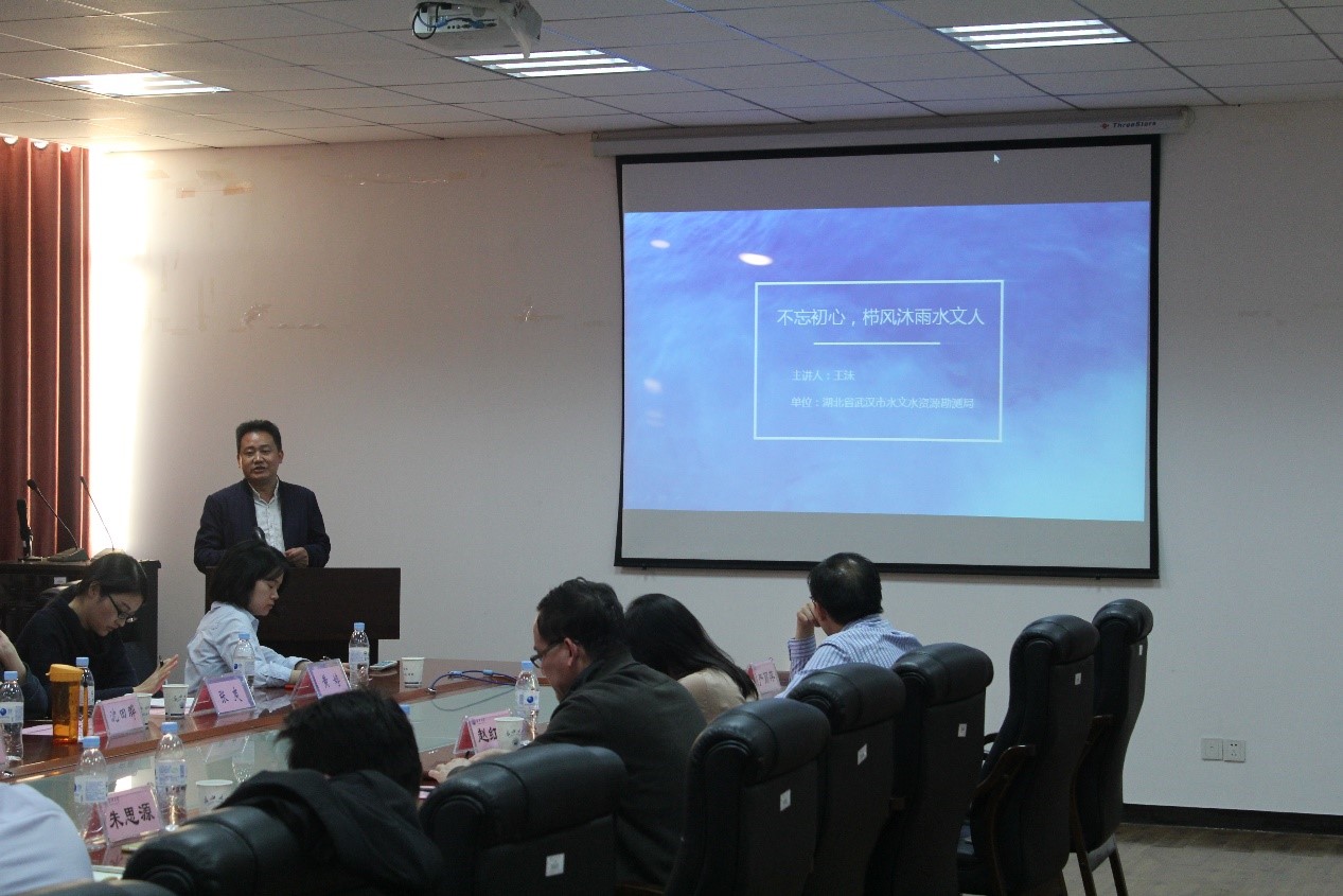 交流会由赵红静副经理主持,首先朱书记对sunbet官方网站概况进行简要描述,提出设备资源共享,人才共同培养,人才深造,实习及毕业设计等合作意向和合作方式,其次由经理助理蔡立梅老师对sunbet公司的现有科研项目,主要研究方向、科研强项简要介绍。由姚华明教授对水文水资源工程专业硕士点,学科重点研究发展四个方向做出解释,并展示sunbet官方网站国际水生态研究院研究项目sunbet官方网站水生态修复集成技术及应用。之后,霍思远老师与罗杰老师分别对水文与水资源工程,环境生态工程两专业的发展现状简要概括,最后,王沫局长做“不忘初心——栉风沐雨水文人”的分享,向大家展示武汉市水文局风貌,同时也分享自己身为水文人多年不忘初心的亲身经历和切身感受。